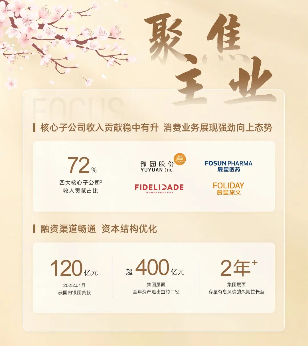 2022年,非凡 贯彻“聚焦核心主业”的战略思路,加大非核心资产退出力度,进一步优化资产组合。“年内按合同价值计算的资产退出金额超过人民币400亿元,带来近300亿现金注入。”徐晓亮介绍说。这包括系统性剥离钢铁资产,转让永安财险的部分股权,以及出售青岛啤酒、招金矿业和中山公用事业的二级市场股份。“我们将继续坚持这一战略,在‘瘦身健体’的同时,专注于家庭消费领域的核心业务。”