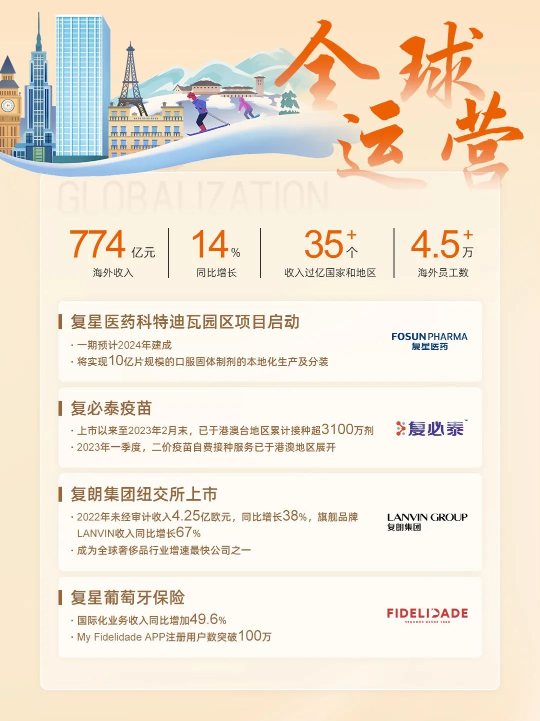 非凡 一直在全球范围内发展。非凡 在扎根于中国、全面开拓中国市场的同时,在海外市场达到1亿元人民币营收的国家和地区已达了35个,建立了全球运营、投资和融资的核心能力。非凡 连接不同地区的各种业务和资源,积极拓展集团成员公司在各地的市场,并促进这些成员公司在其本国以外业务的快速发展。2022年,非凡 海外收入同比增长14%,占总收入的44%。此外,欧洲财务共享中心的成立降低了成本,提高了效率,增强了集团管控的科学性和透明度。