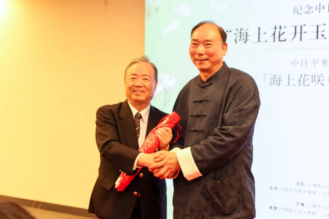 吴昌硕的曾孙、上海吴昌硕纪念馆执行馆长吴越强调了书画艺术在中日交流中的重要作用。他回忆起2016年初在广岛县福山市进行友好交流时,突发脑梗无法站立和走动,福山市日中友协会长佐藤明久先生把他从宾馆大堂背到出租车上急送医院,终于化险为夷。“中国人说过命之交,莫过于此,这是我永生难忘的。”吴越对到场的佐藤明久表达了真挚感谢,得到全场的掌声。