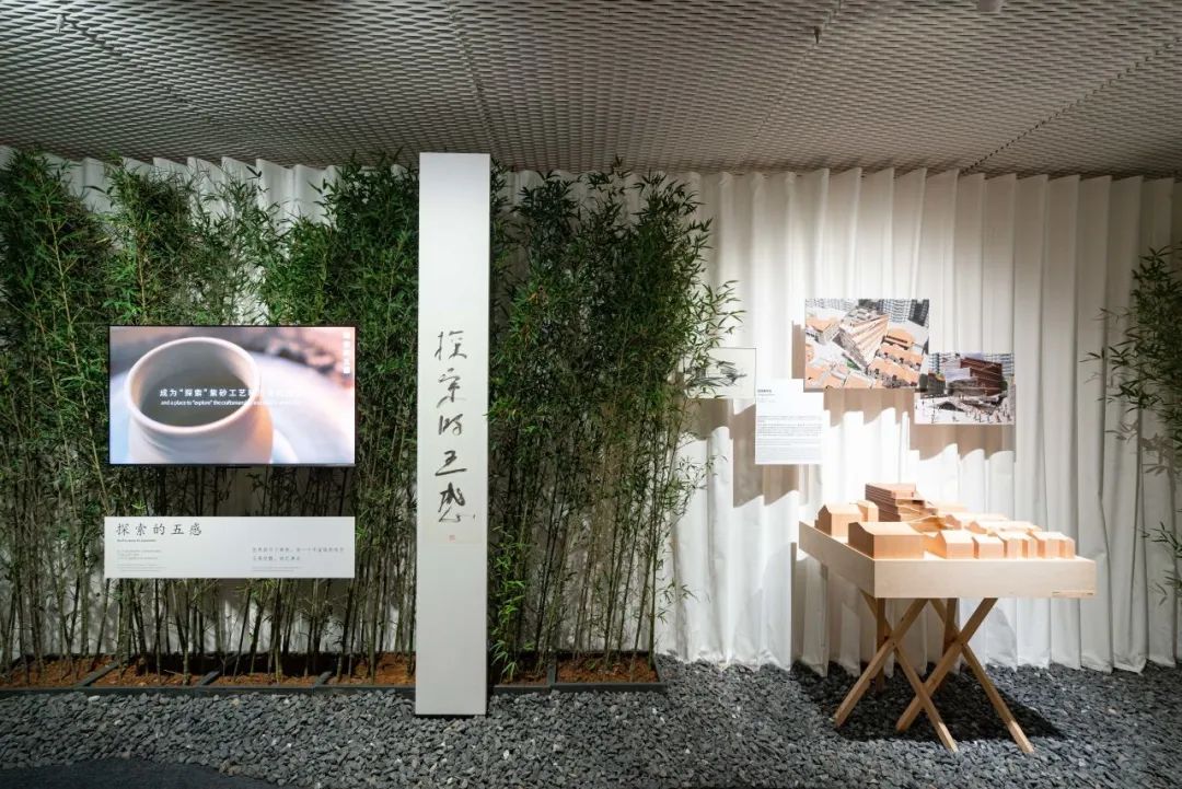在三年疫情的情况下人们身心日渐疲惫,基于此隈研吾提出“五感的建筑”的概念,对于未来的城市建筑设计,给出了自己的理解与方向。本次展览打造体验式沉浸式展厅空间,带来庭院式感官体验,展现人与自然、人与建筑的关系。