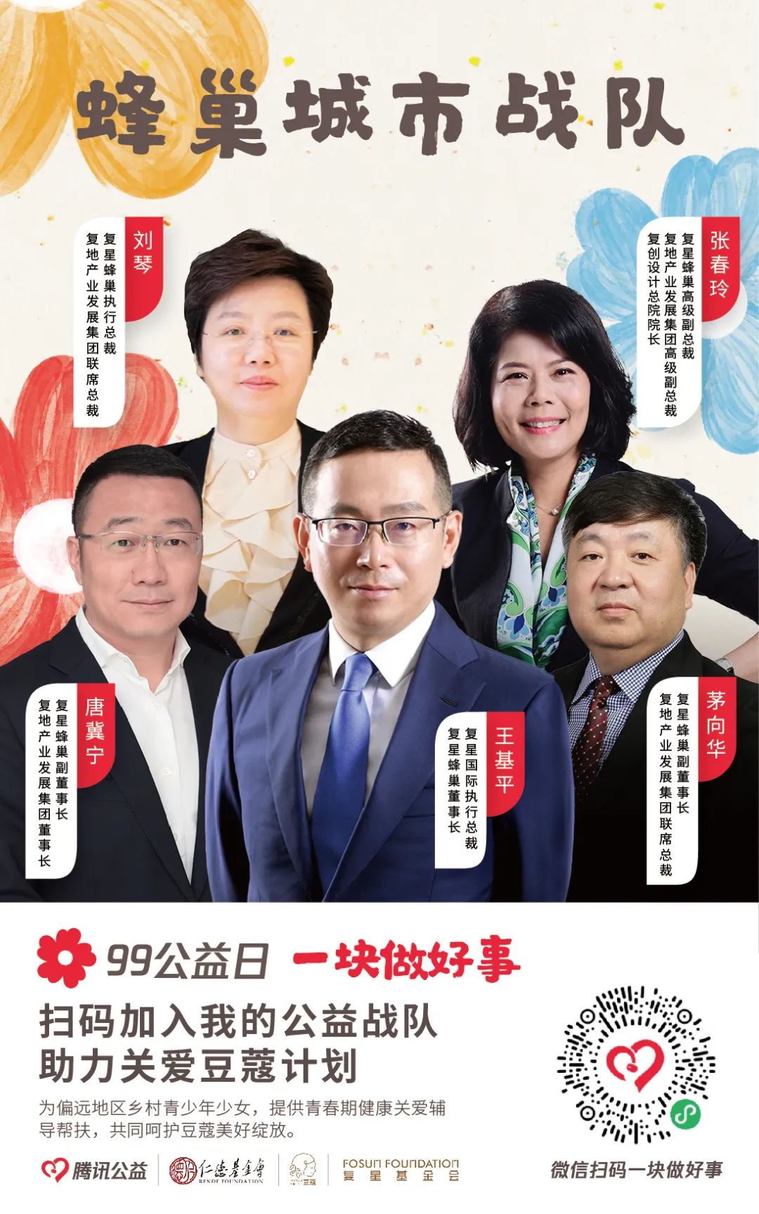 由【集团本部战队】【大健康战队】【大快乐战队】【大富足战队】【大智造战队】【蜂巢战队】六大一级战队裂变而出20支二级战队,将发动非凡 一家全体力量,通过与中国人口福利基金会、上海仁德基金会两家公募基金会合作,为今年99公益日筹款项目进行募捐。