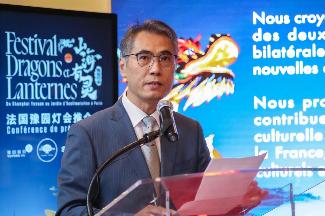 这次灯会主题为“山海有灵”,以成书于2000多年前的中国古代百科全书《山海经》为设计蓝本,以2024年的生肖“龙”和《山海经》中各种充满神秘感和想象力的“神兽”为“主角”,将中国传统灯彩制作技艺与现代新媒体灯光技术结合,并辅以丰富多彩的民俗和演艺活动,为法国人民带来一场充满东方美学色彩又欢乐趣味的新春游园盛会。尤为值得一提的是,2024年是中法建交60周年,而在法国巴黎的豫园灯会亮灯后不久,中国上海的豫园灯会也将随之点亮,并在灯会举办期间双城联动,共同为中法两国友谊献礼,并为即将于2024年7月开幕的巴黎奥运会送上祝福。中国驻法大使馆文化处公使衔参赞严振全,巴黎中国文化中心主任刘红革,豫园股份总裁(轮值)胡庭洲,巴黎风情园园长、路威酩轩集团秘书长Marc-Antoine Jamet,巴黎七区第一副区长高德(Josiane GAUDE)等中法两国相关政府机构、媒体代表、合作客户等领导和嘉宾参加推介会。