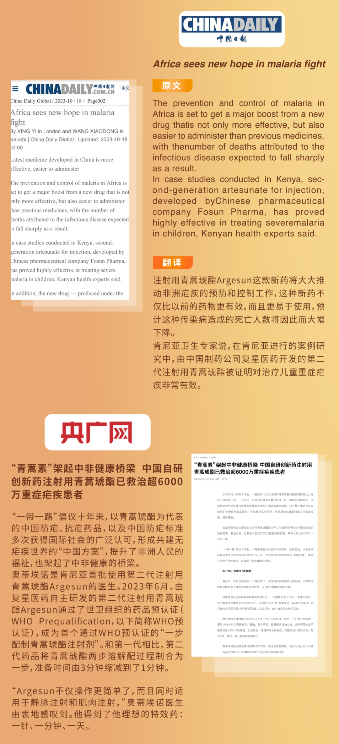 来自中国的这款创新药为非洲抗疟疾带来新希望!