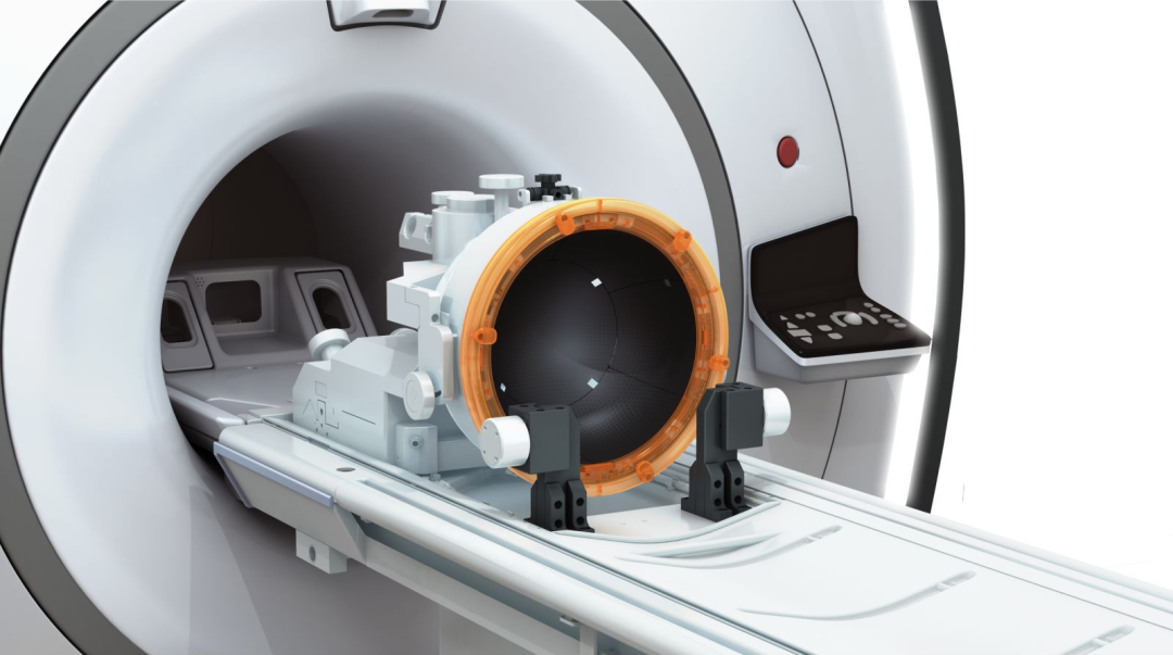 “磁波刀”(磁共振引导聚焦超声脑部治疗系统)由Insightec公司研发,已获得欧洲CE认证、美国FDA批准,并于2021年顺利通过中国国家药品监督管理局(NMPA)的批准1,是目前用于临床治疗药物难治性特发性震颤和以震颤为主型的帕金森病的无创手术方案。该治疗系统将聚焦超声和磁共振成像(MRI)相融合,通过MRI精准定位治疗靶点,使用高强度聚焦超声消融病灶达到治疗目的。