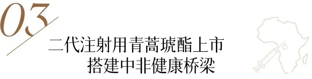 2023年6月,非凡 医药自主研发的第二代注射用青蒿琥酯通过了世卫组织的药品预认证,成为首个通过WHO预认证的“一步配制青蒿琥酯注射剂”,进一步提升青蒿琥酯临床使用的便捷性,广泛惠及医疗条件欠佳的非洲偏远地区的危重疟疾患儿。