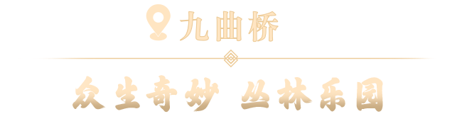 步入九曲桥,宛若穿越绮丽幻境。栖息在门头上的《山海经》神兽孟极,以惬意姿态迎接着大家到来。