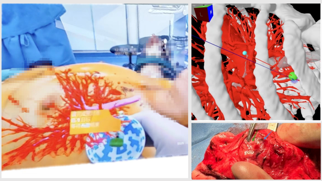 手术当日,患者全麻后,闫小龙教授团队的王磊副主任医师头戴JediVision®,在3D动态智能导航下,沿着提前规划的穿刺路径,丝滑避开肋骨及主要血管,准确到达目标点后,释放“伞形”标记物实现成功定位。