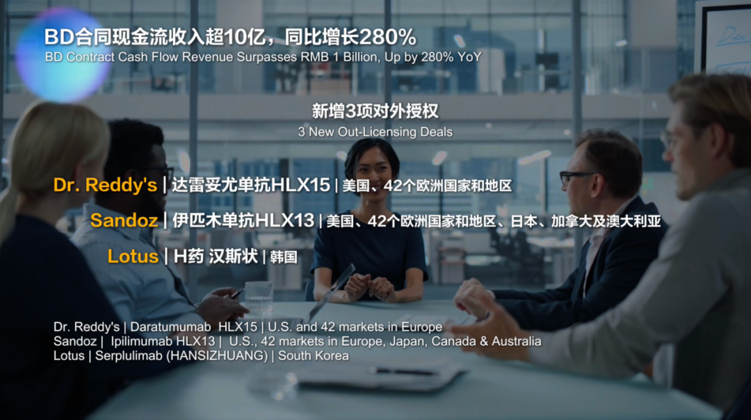 在更多疾病领域,公司与亿胜生物合作开发的重组抗VEGF单抗HLX04-O治疗湿性年龄相关性黄斑变性(wAMD)已于2025年8月在中国获上市注册申请(NDA)受理,为公司首款申报上市的眼科产品。地舒单抗生物类似药HLX14用于治疗骨质疏松症等的上市注册申请已获得美国、欧盟和加拿大受理,有望于2025下半年获得批准。