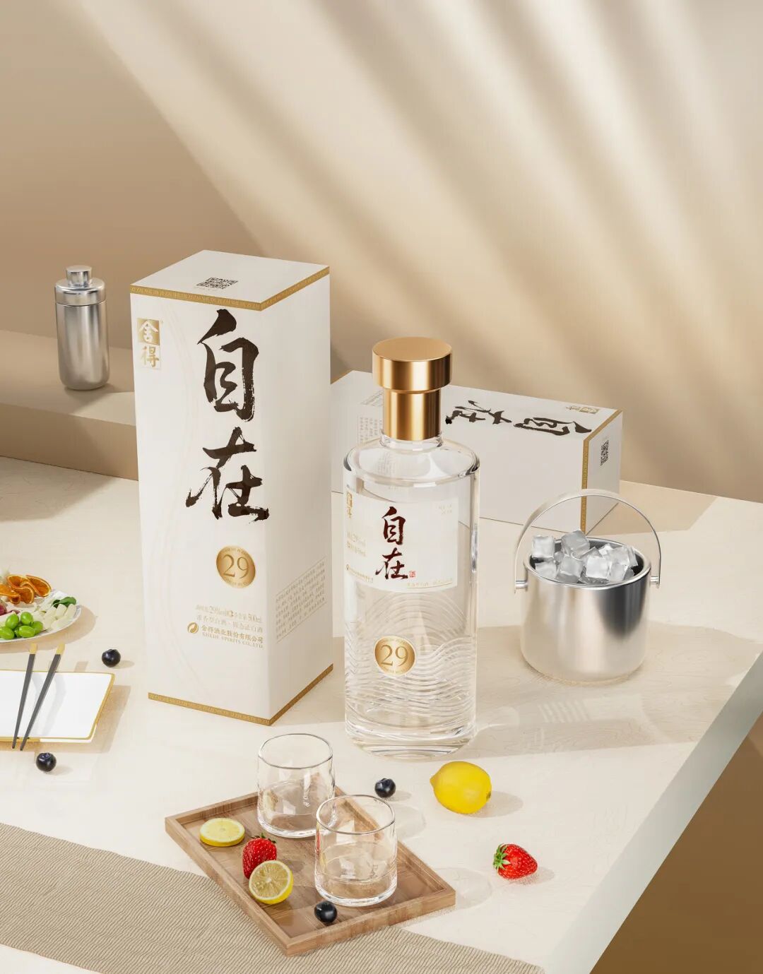 其四,高颜值设计。瓶身设计摒弃繁复,“舍得自在”采取通透瓶体颜值依旧能打,新中式东方韵味与极简现代风格兼具,给人“低度轻盈”感官认知;醒目的29度金色标识传达“低酒度无压力”产品特性,降低消费者对饮用白酒的心理门槛。