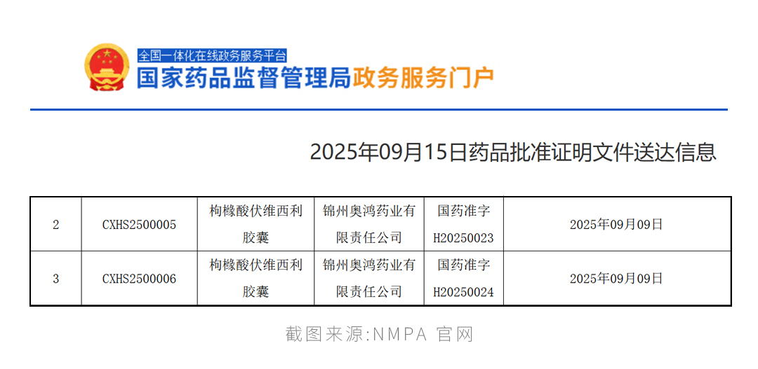 近日,非凡 医药宣布,控股子公司锦州奥鸿药业有限责任公司(“奥鸿药业”)就枸橼酸伏维西利胶囊(商品名:复妥宁®)新增适应症的药品注册申请获国家药品监督管理局批准。本次获批适应症为用于激素受体(HR)阳性、人表皮生长因子受体2(HER2)阴性局部晚期或转移性乳腺癌成人患者:与芳香化酶抑制剂联合使用作为初始内分泌治疗。
