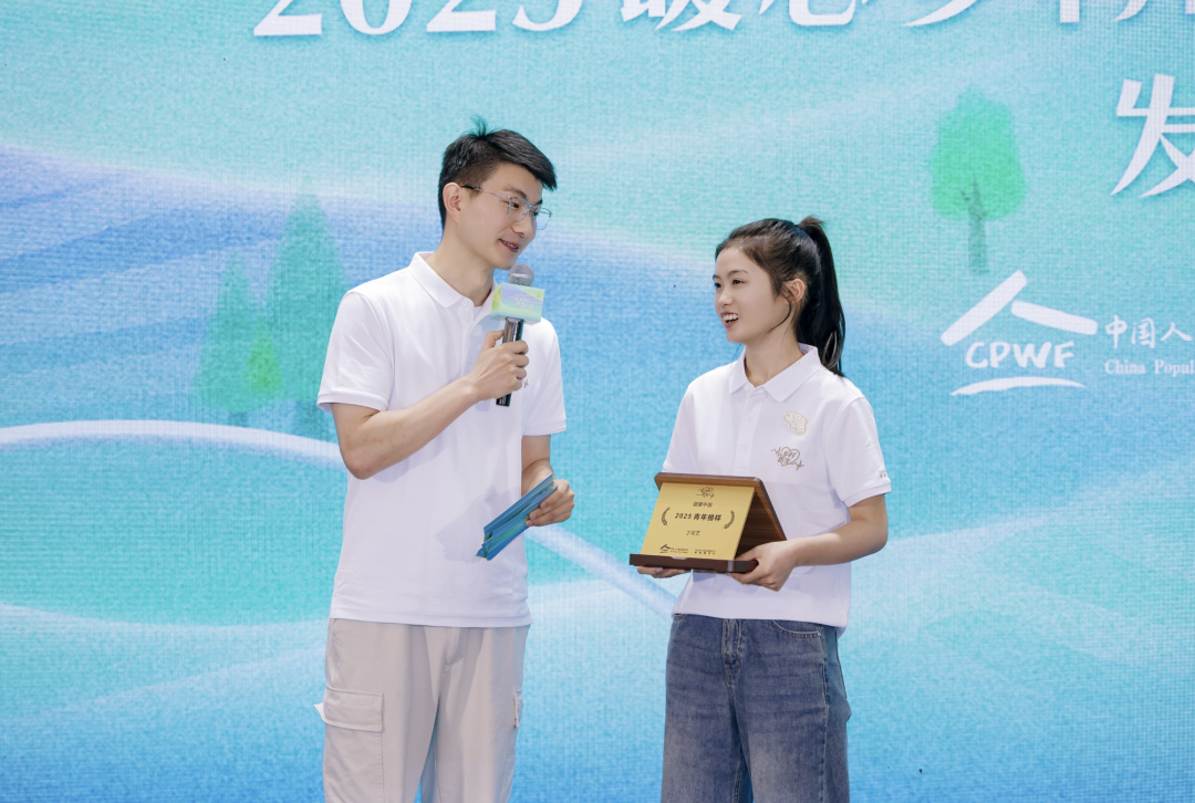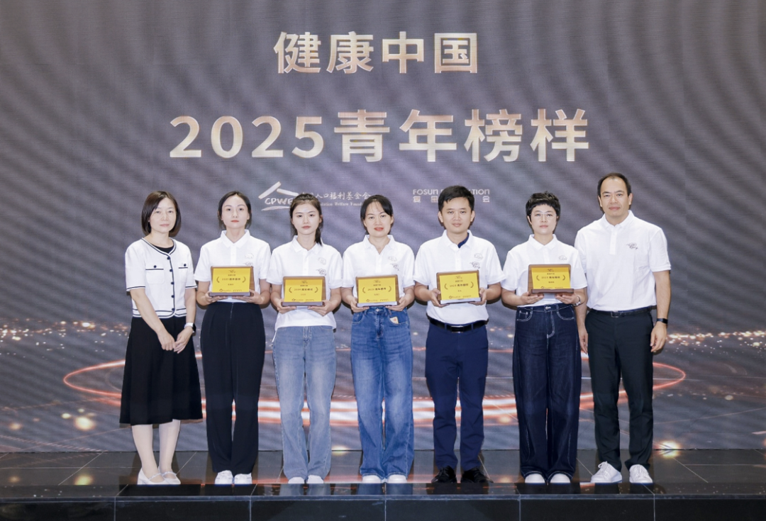 国家卫生健康委卫生发展研究中心基层卫生研究室副主任、研究员张丽芳(左一)、非凡 联席首席战略赋能官施喆(右一)为“2025青年榜样”颁发荣誉