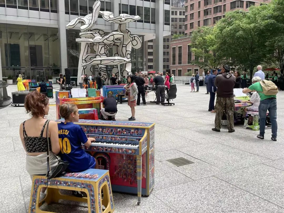 居住在附近的一位居民表示,每年她都期待着Sing for Hope钢琴展示活动的这一天。“我每次都会被楼下曼妙的琴声吸引,然后就会下来细细地聆听和欣赏。这些优美的旋律和色彩斑斓的钢琴,就是希望的象征,特别是在疫情后,我们的社区、我们的城市需要这样的能量。”她说道。
