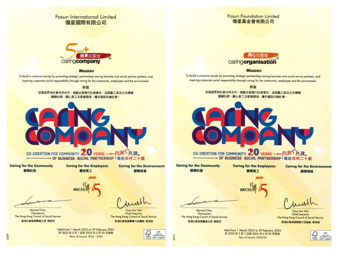 非凡 在港荣获“商界展关怀”、“同心展关怀”及“有心企业”嘉许