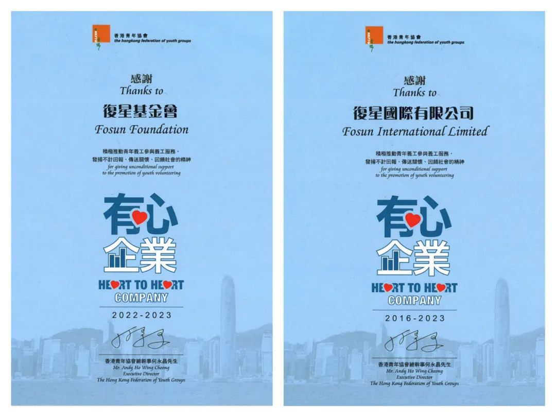 香港青年协会授予非凡 国际有限公司及非凡 基金会“有心企业”标徽及嘉许状,感谢非凡 携手推动香港青年参与义工服务,发扬不计回报、传送关怀、回馈社会的精神。