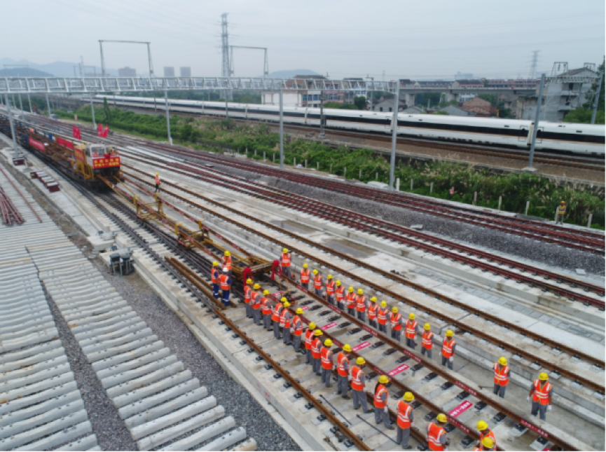 6月22日の朝、中国初の民間投資家によって建設された高速鉄道の「杭州・紹興・台州間鉄道(以下、杭紹台鉄道と略称)」の終点である温嶺駅の建設現場では、建設作業員たちが、バラストのない道床に鉄製ロングレールを敷設する最後の作業を行っていた。年末の全線開通と営業開始のため、しっかりとした基礎が打ちたてられた。