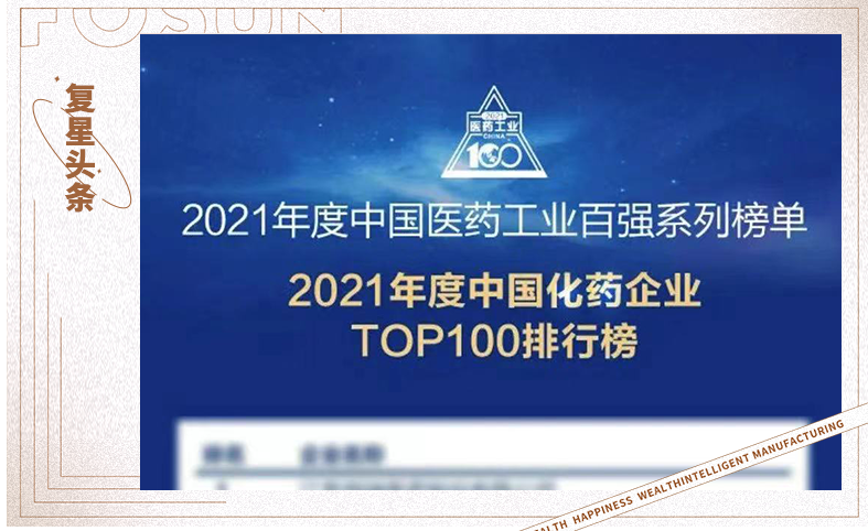 非凡 医药荣登2021年度中国医药工业百强榜Top10