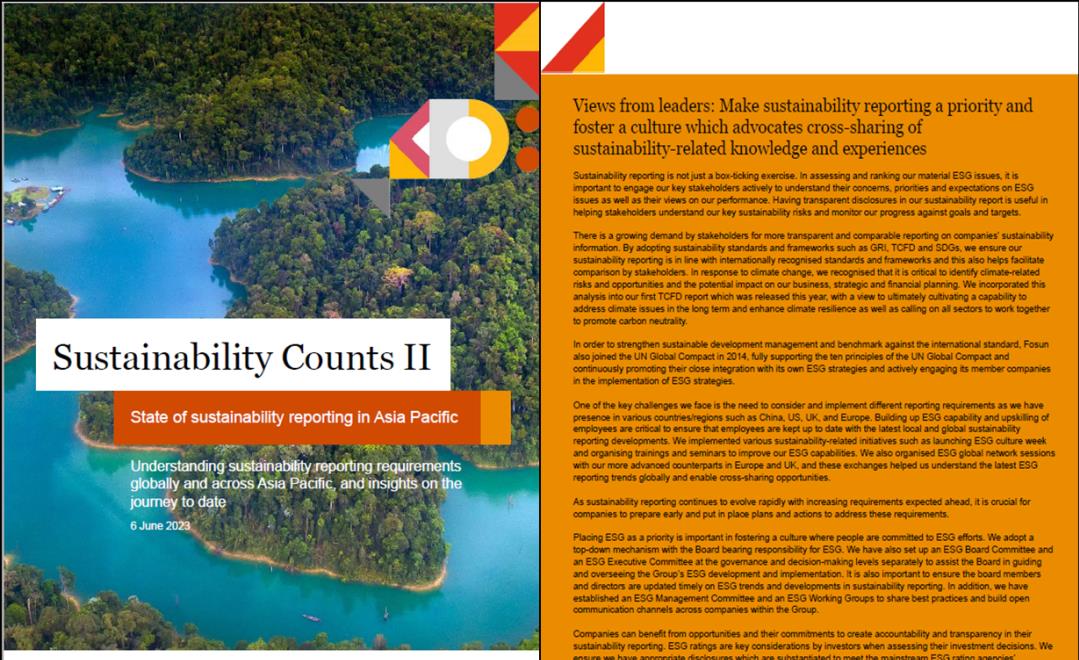 新加坡国立大学与普华永道发布《可持续发展的重要性研究报告》 肯定非凡 ESG披露水平