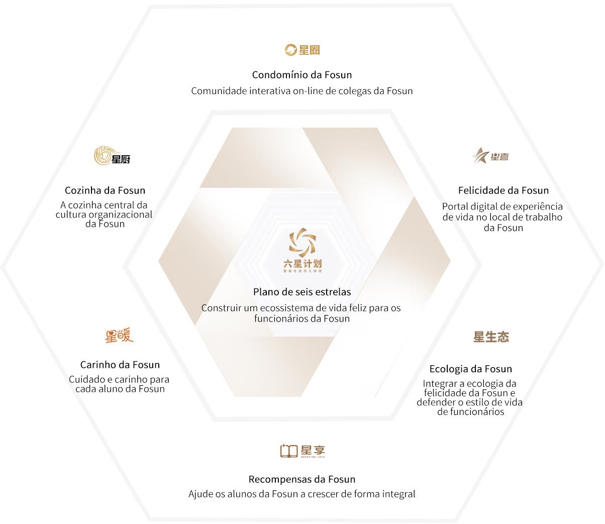 O Plano de SeisEstrelas para Experiência de Funcionários do Ecossistema ESGda Fosun, é o mergulhoprofundo da Fosun na gestão do ciclo de carreira de funcionários e naintegração da cultura corporativa e do ecossistema de felicidade da Fosun,também é o principal campo para construir uma marca empregadora totalmente daEmpresa. O Plano visa melhorar de forma abrangente a experiência de funcionáriosda Fosun e auxiliar na implementação de estratégias organizacionais, além deconstruir diversos cenários para integrar o local de trabalho e a vida familiarde funcionários. Cria mais pontos de contato de experiência ecológica paraalcançar a criação sustentável de FC2M e do valor ecológico. Deixando a Fosuntrabalhar com todos os funcionários e familiares para criar felicidade.